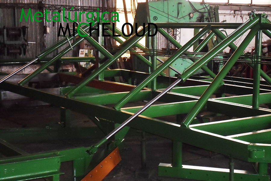 Esta construido su chasis en perfil UPN 140 y hierro angulo de 4″x 3/8″. largo entre ejes 11,5 m