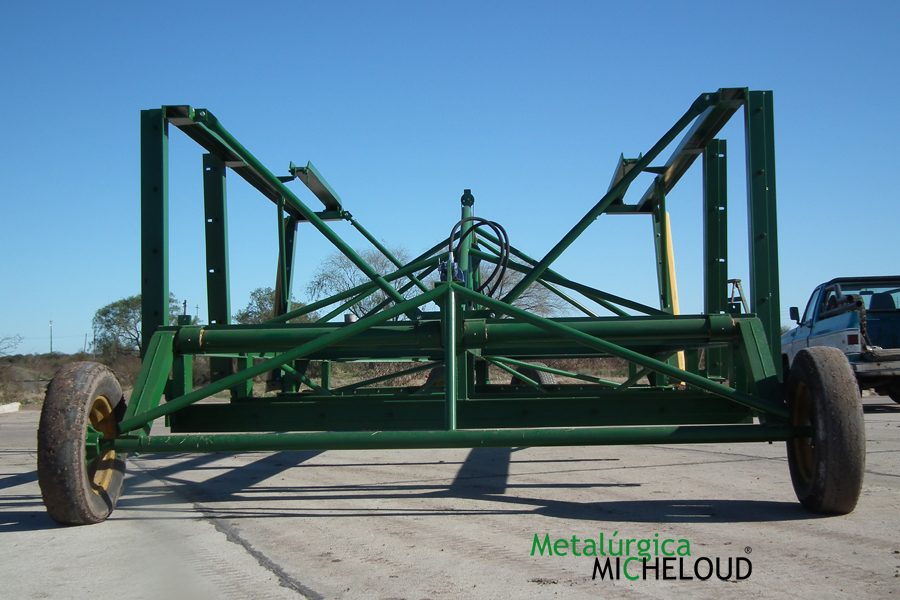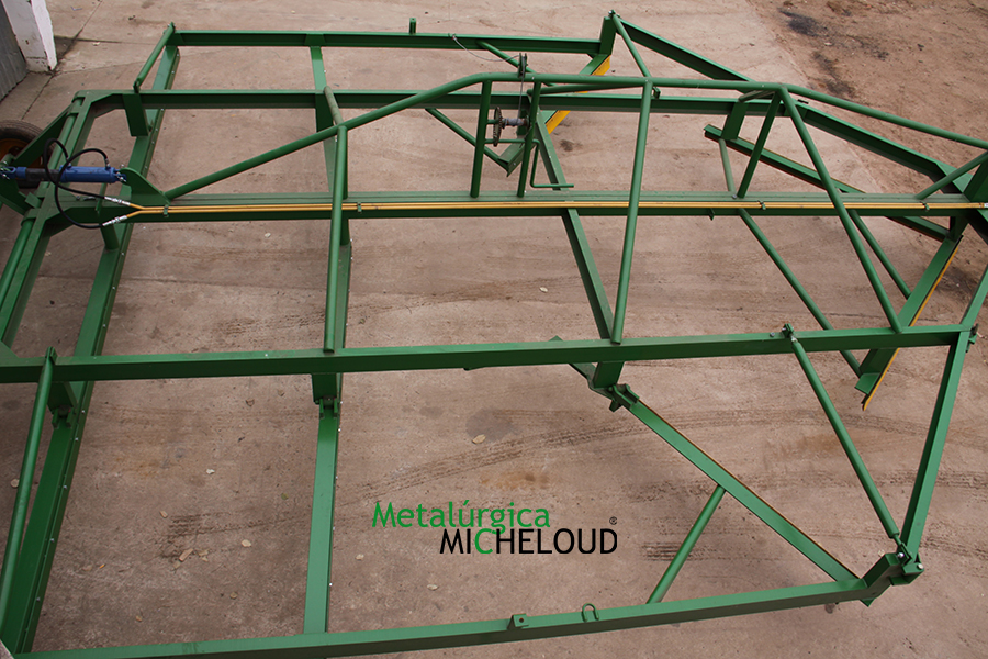 El avantrén delantero construido en tubo 100 x 100 x 6 mm el cual lleva una rotula de giro de tractor.